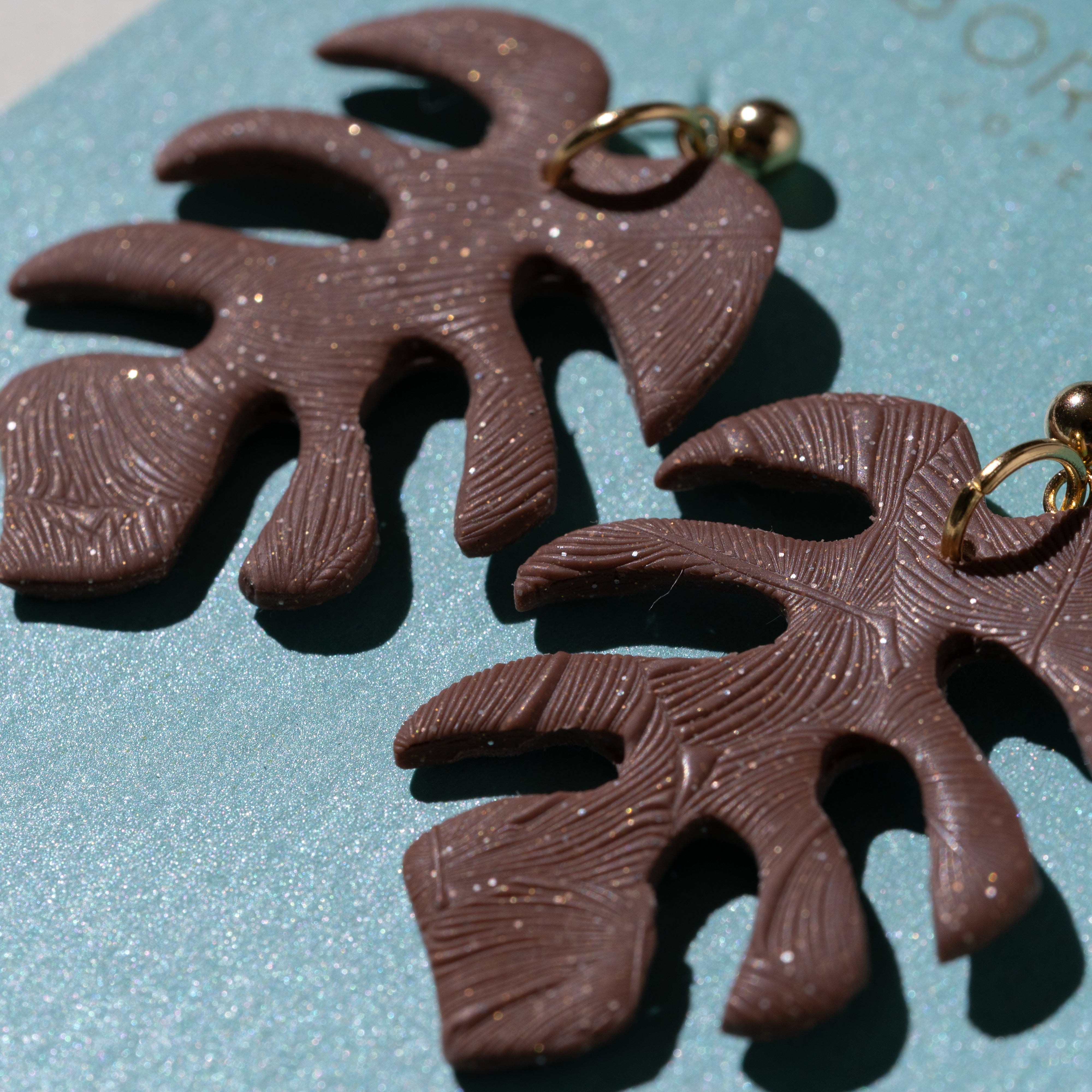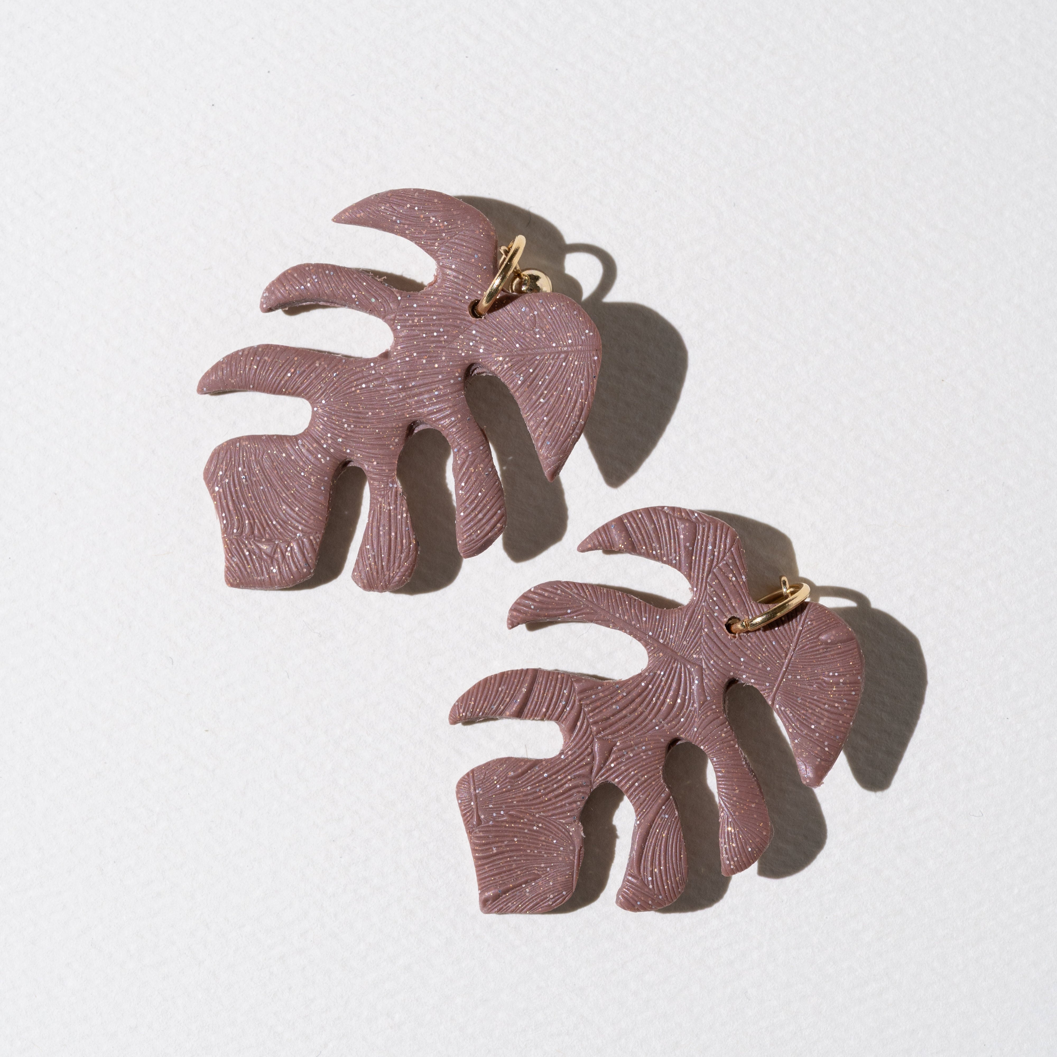 Aretes de arcilla en forma de hoja Monstera, super ligeros y combinables.