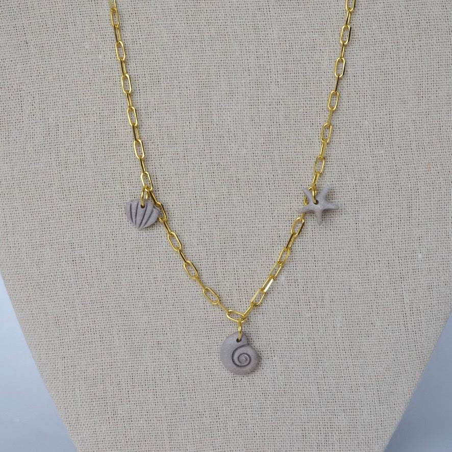 Cadena en baño de oro de 18k con diferentes diseños de dijes marinos.