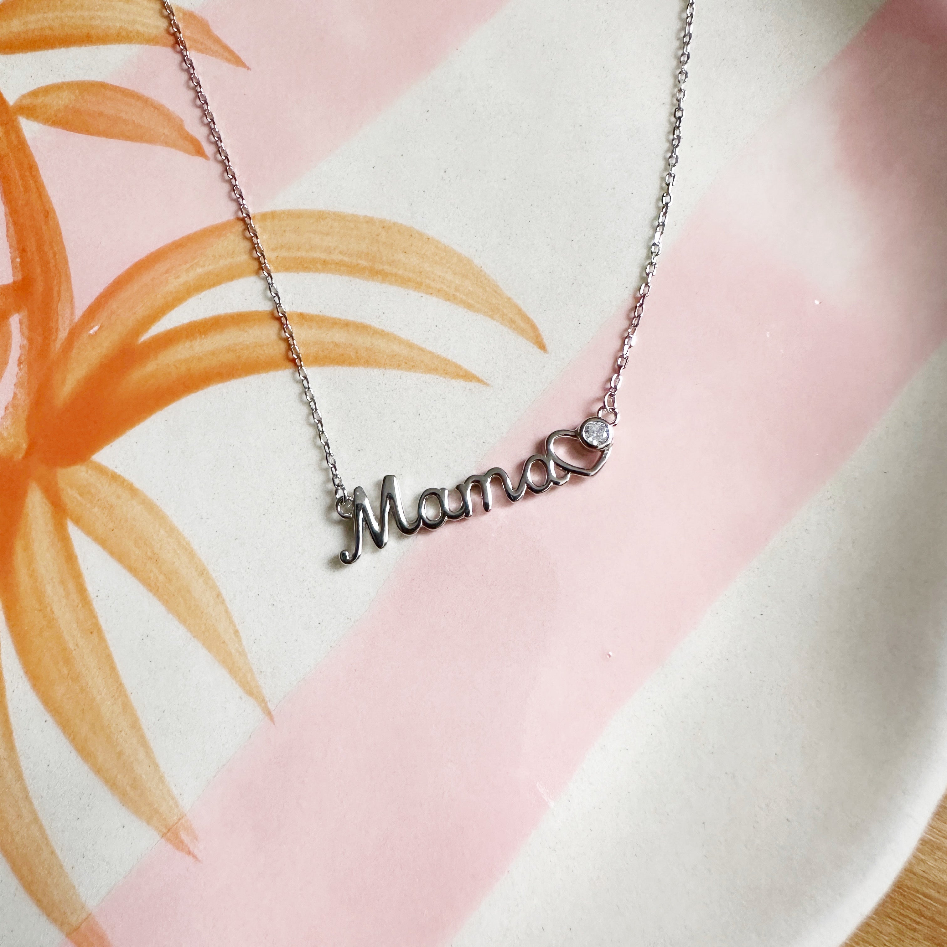 Cadena de plata con dije Mamá y una circonia en el corazón