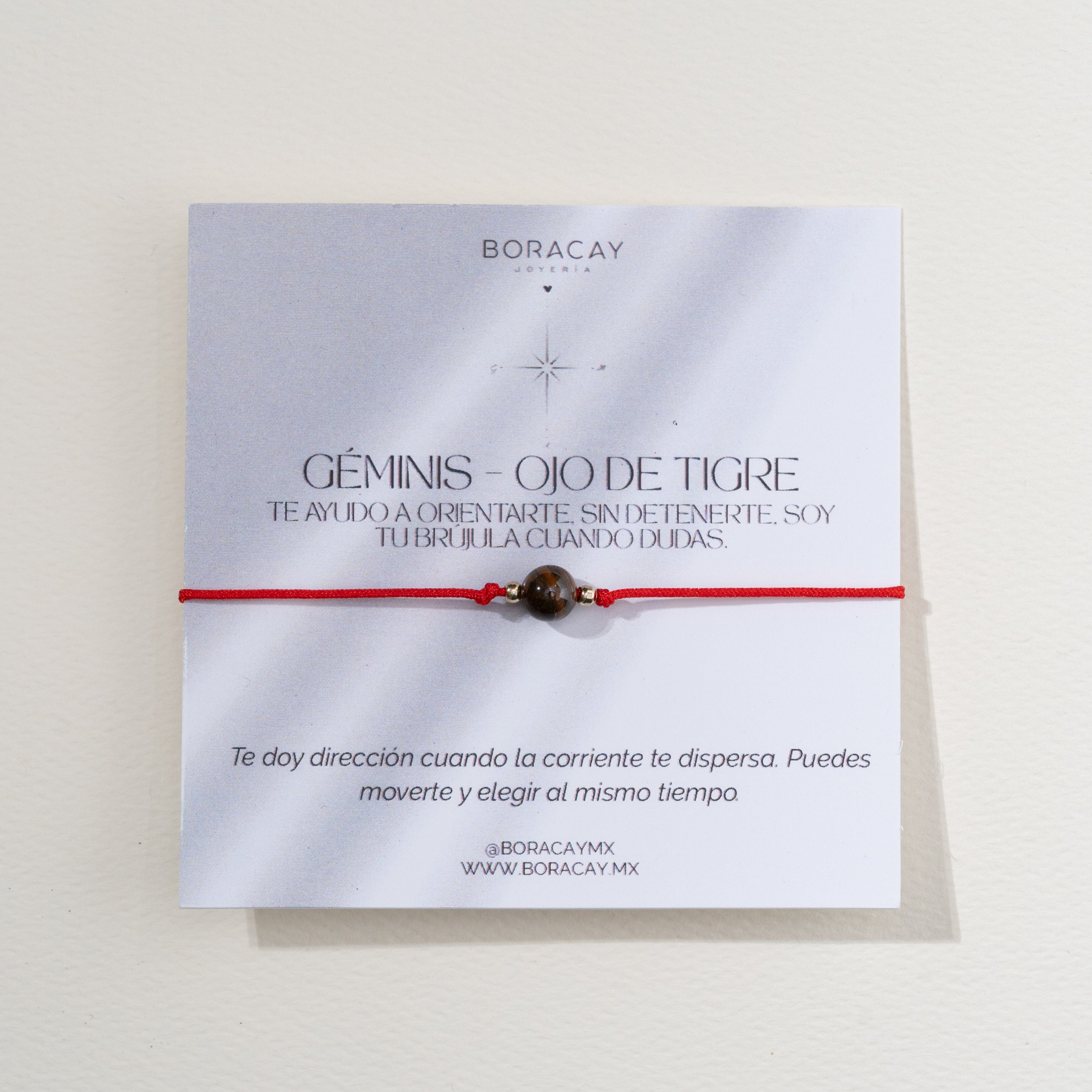 Hecha a mano con ojo de tigre natural, piedra asociada al signo Géminis, conocida por aportar fuerza, enfoque y protección. Equilibra mente y emociones, ayudando a tomar decisiones con seguridad. Perfecta para quienes buscan claridad y energía en su día a día.
