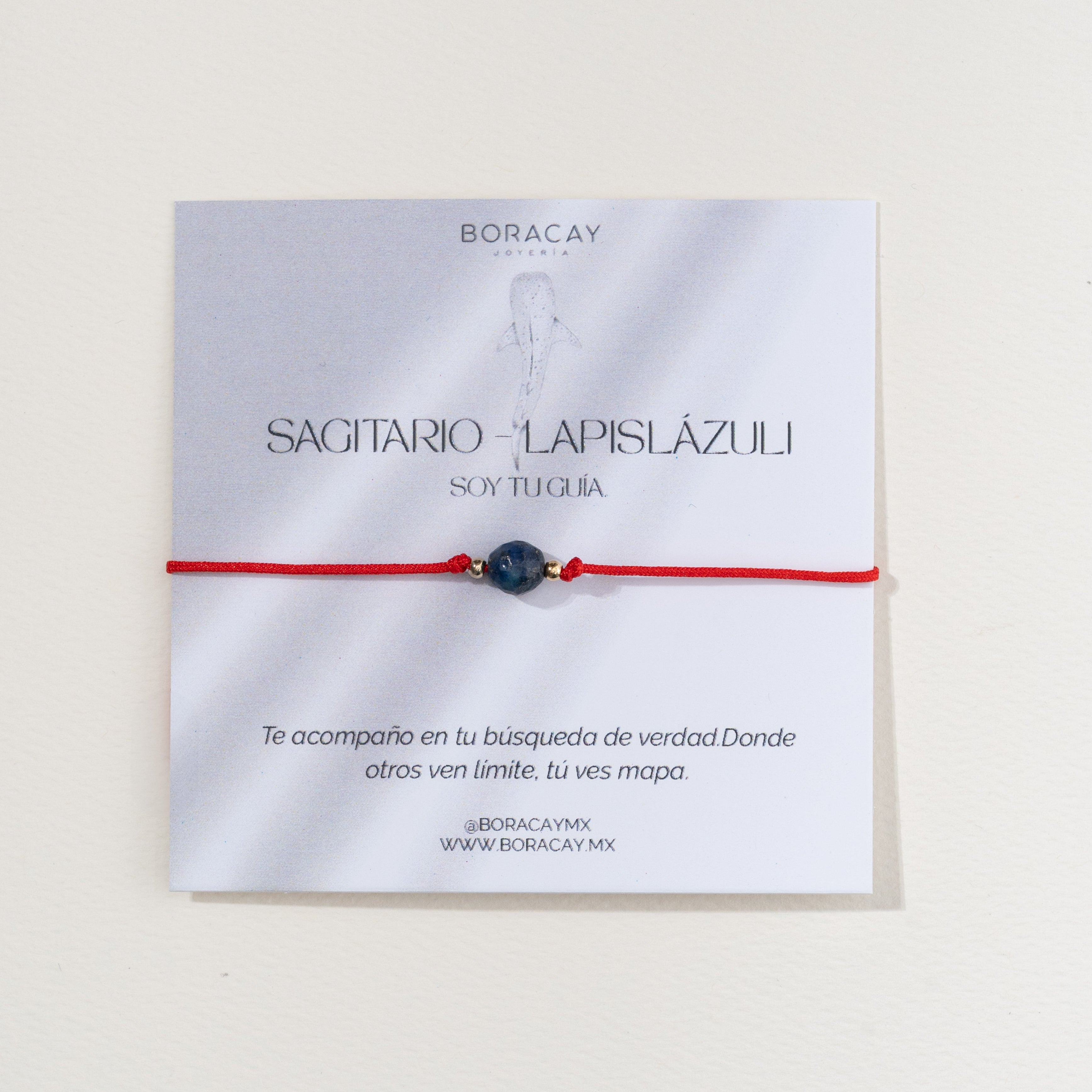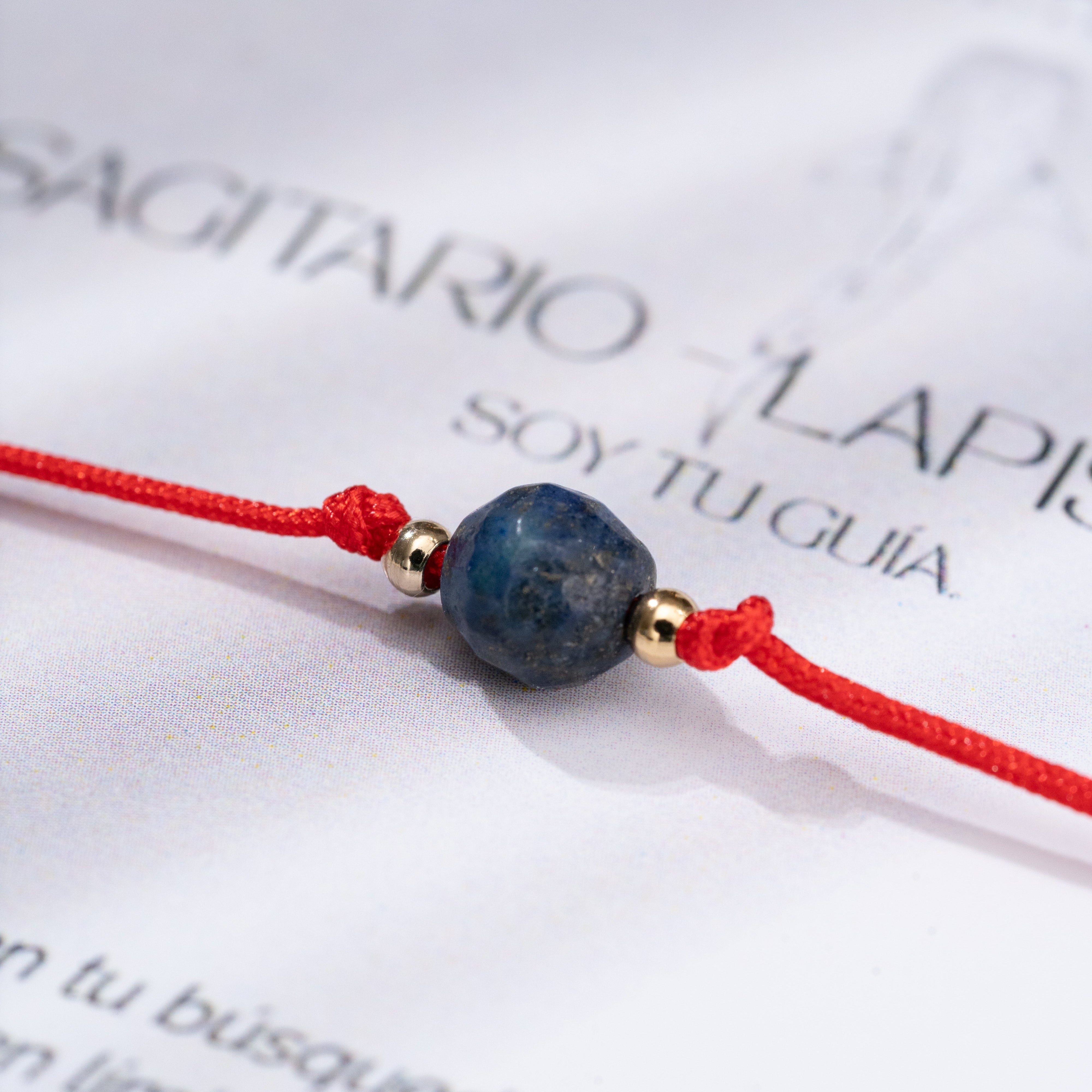 Hecha a mano con lapislázuli natural, piedra asociada al signo Sagitario, conocida por potenciar la sabiduría y la comunicación. Estimula la claridad mental y la intuición, ayudando a expresar pensamientos con confianza. Perfecta para quienes buscan expansión personal y verdad interior.